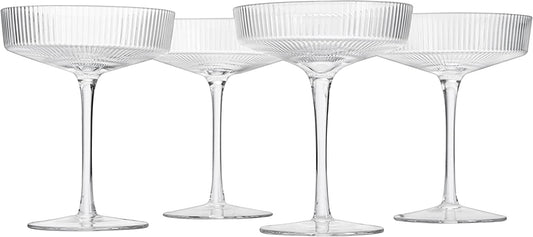 The Wine Savant - Coupe Cocktail Glasses 8 oz - Set of 4 - Classic Manhattan Glasses For Cocktails, Champagne Coupe, Ripple Coupe Glasses, Art Deco Gatsby Vintage