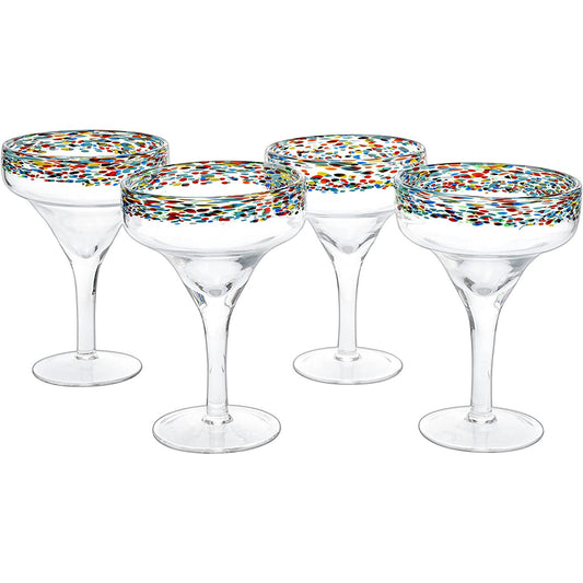 The Wine Savant - Mexican Design Hand Blown Margarita Glass - Set of 4 Luxury Hand Blown Confetti Margarita Glasses - 16 oz