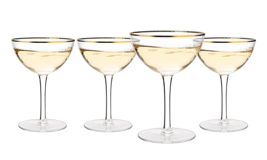 The Wine Savant - Gold Rim Glasses - 6 oz - Set of 4 - Classic Cocktail Coupe Champagne Glasses