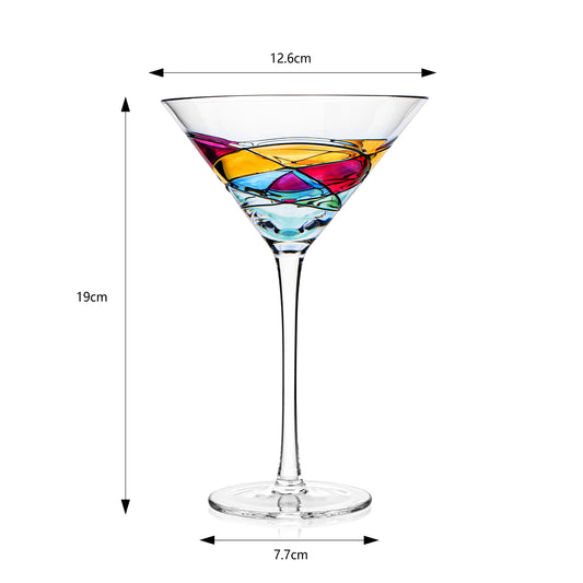 The Wine Savant - Hand Painted Stained Glass Martini Glasses 8 oz - Crystal Glass with Stem - Set of 2