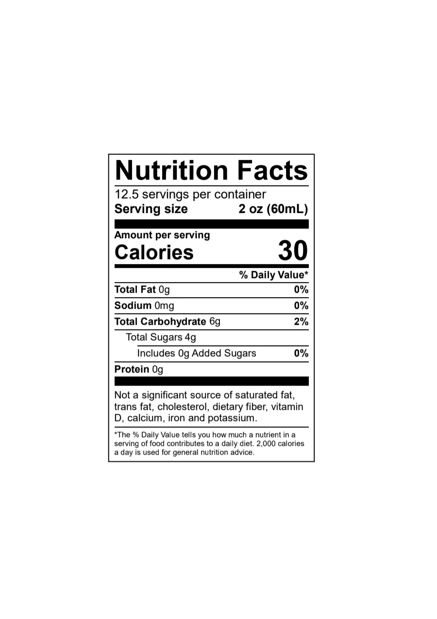 Filtered Water, White Grape Juice Concentrate, Ginger Juice, Lemon Juice, Rose Extract, Rosemary Extract, Elderflower Extract, Black Currant Juice Concentrate, Chamomile Extract, Ginseng Root, Lemon Balm, Bitter Orange Rind, Clove, Fruit & Vegetables Extract (For Color)